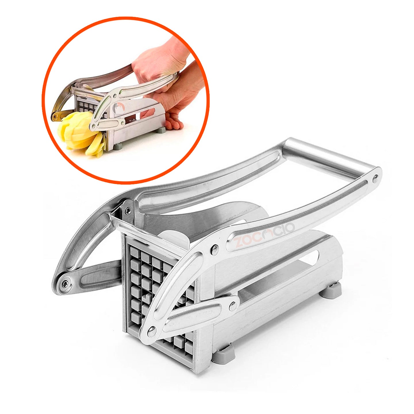 - Incluye 2 cuchillas intercambiables, para elegir entre papas finas o gruesas.